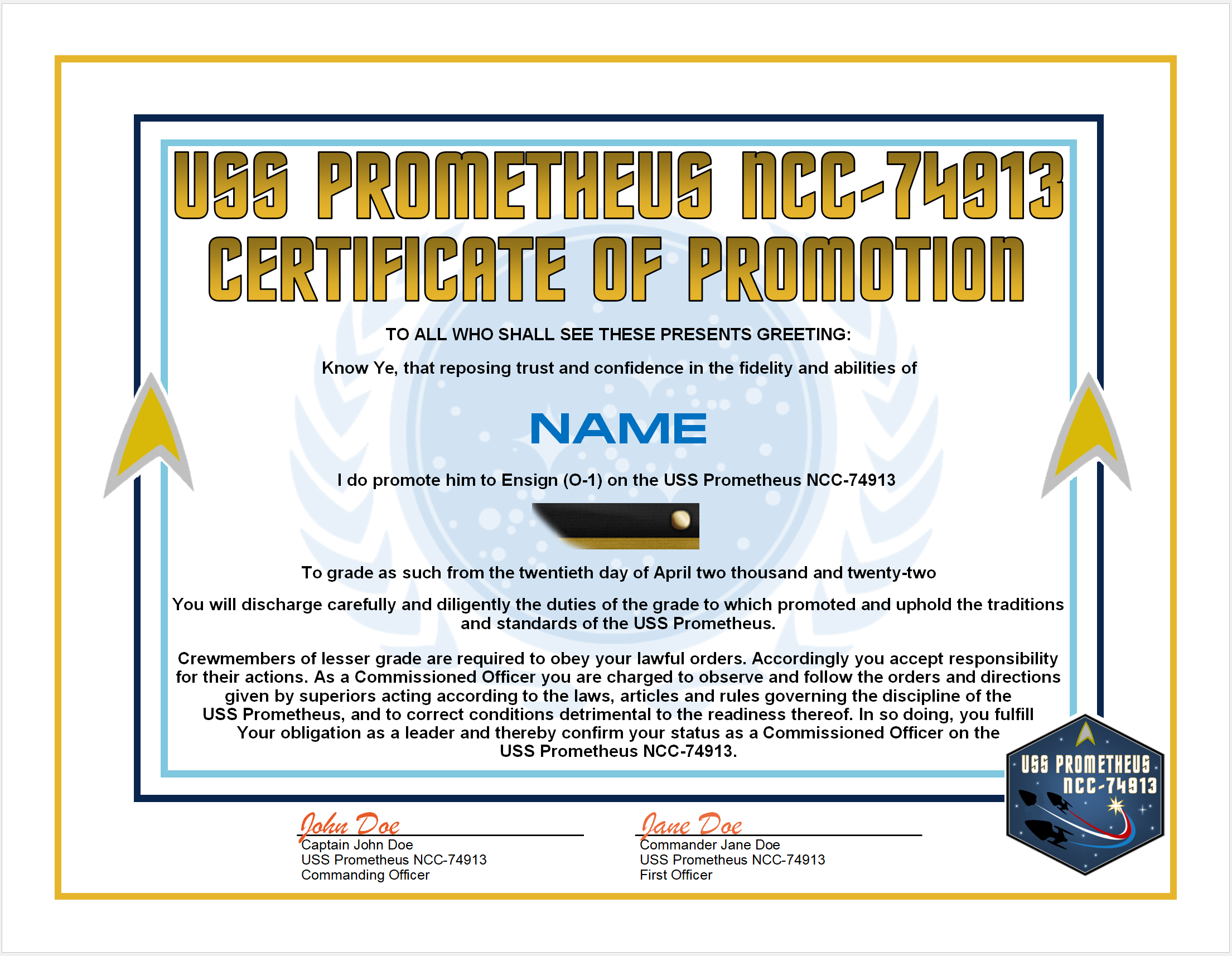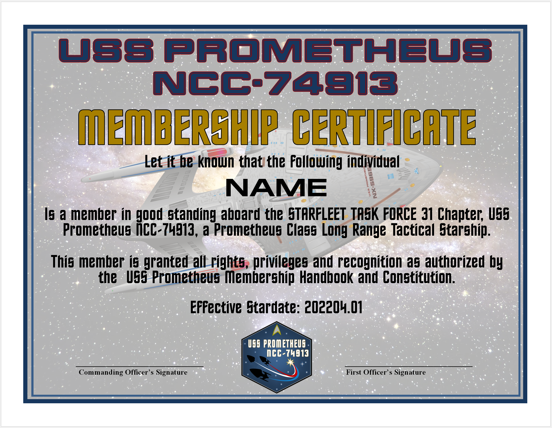Captain’s Log- USS Prometheus