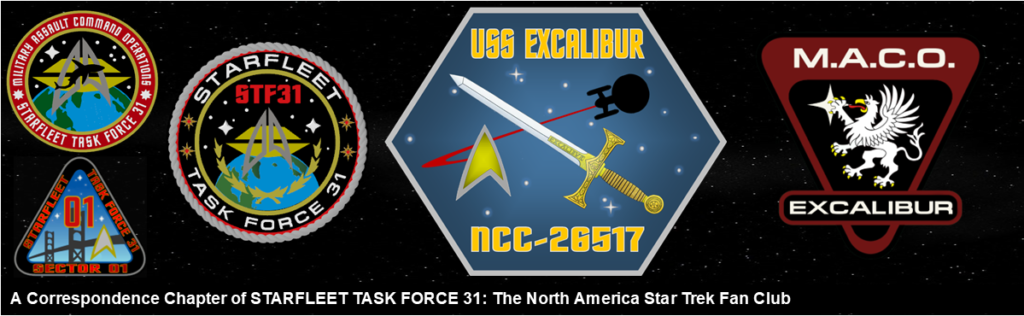 Welcome to the official website of the USS Excalibur NCC-26517. The USS Excalibur is a correspondence chapter of STARFLEET TASK FORCE 31, based out of Portsmouth, Rhode Island.